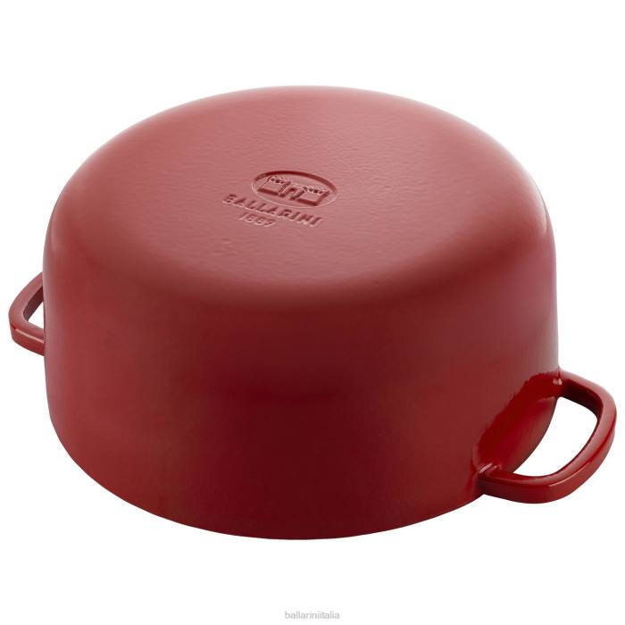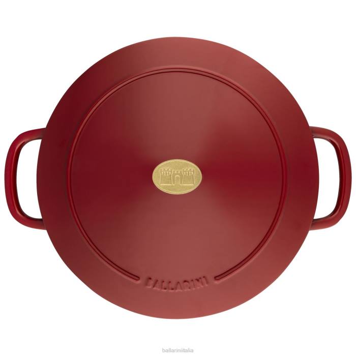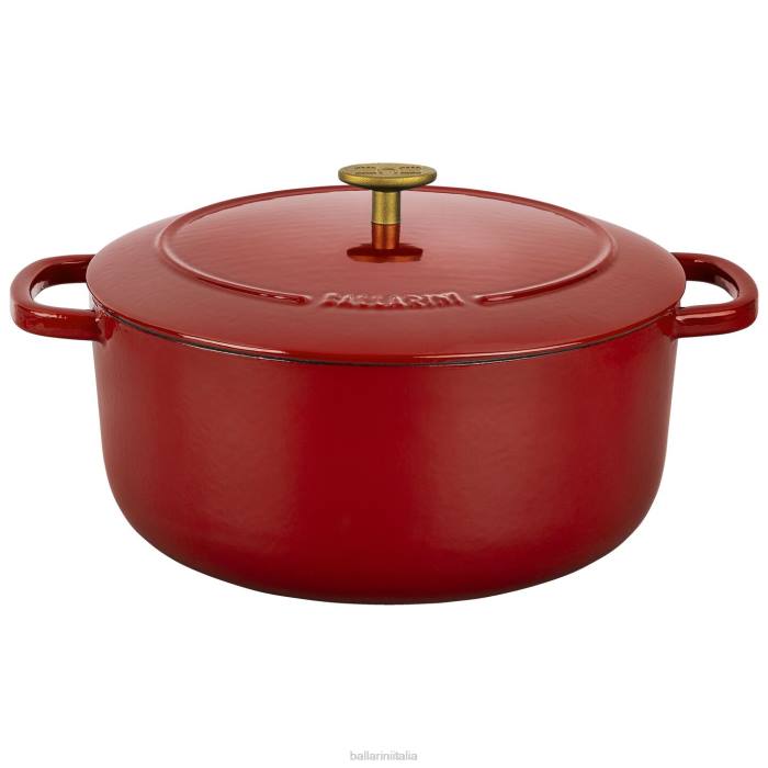 La ghisa smaltata Bellamonte porta l'autentico patrimonio italiano nella cucina moderna. l'elegante interno bianco crema possiede un'eccezionale ritenzione del caloreg qualità, quindi la pentola si riscalda uniformemente. il rivestimento in smalto è ultra durevole e resistente ai graffi, così potrai goderti le tue pentole più a lungo. il pregiato pomello del coperchio color ottone è ornato dalla porta della città di rivarolo, emblema iconico di ballarini. servire direttamente in tavola in questo splendido forno olandese dotato di maniglie di grandi dimensioni per un facile controllo e la massima manovrabilità.