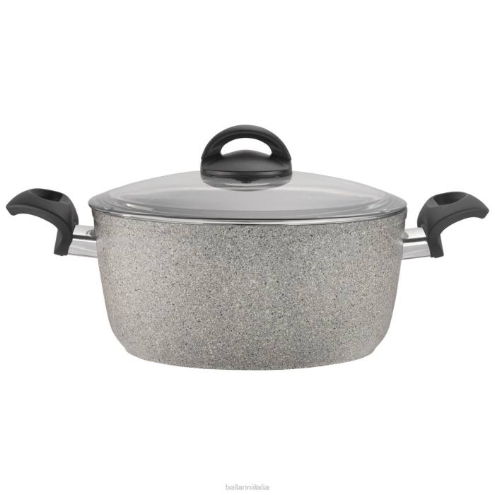 Orgogliosamente realizzato in Italia, Ballarini è specializzato in pentole antiaderenti di alta qualità ispirate alla ricca tradizione della cucina italiana. grazie alle sue macchioline distintive, la linea superiore Ballarini Parma è antiaderente come nessun'altra. il rivestimento antiaderente in granito è rinforzato con particelle ceramiche che garantiscono un rilascio rapido e una facile pulizia. con un cuore di pietra, questo rivestimento in granito ultra resistente vanta un'insuperabile resistenza ai graffi, rendendolo sicuro per gli utensili in metallo.