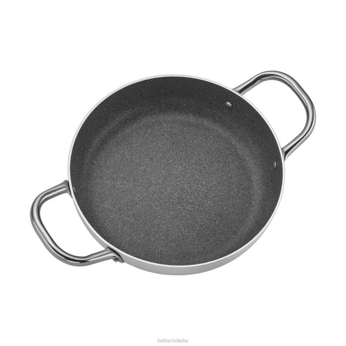 orgogliosamente prodotto in Italia, Ballarini è specializzato in pentole antiaderenti di alta qualità ispirate alla ricca tradizione della cucina italiana. La serie Ballarini professionale 2800 è la padella antiaderente indispensabile per gli chef casalinghi più esigenti. Progettate per un uso intensivo, queste padelle testate per ristoranti portano pentole di qualità professionale nelle cucine domestiche. Rinforzato con particelle di ceramica, il rivestimento antiaderente professionale Kerastone Profi Granit vanta una durata eccezionale e un rilascio rapido. goditi cibi perfettamente dorati e impeccabili che non si attaccano grazie a questo rivestimento duraturo e sicuro per i metalli. La spessa struttura in alluminio forgiato a freddo garantisce una distribuzione ottimale del calore senza punti caldi. per una facile manovrabilità, il manico in tubo cavo rimane fresco al tatto ed è saldamente rivettato per resistere all'uso quotidiano. Tutti sono chef quando cucinano con Ballarini.